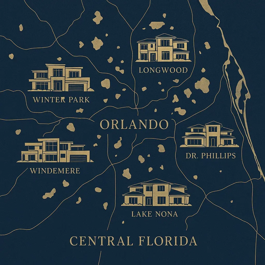 Orlando, Winter Park, Dr. Phillips, Windermere, Lake Nona, Longwood, Altamonte Springs.